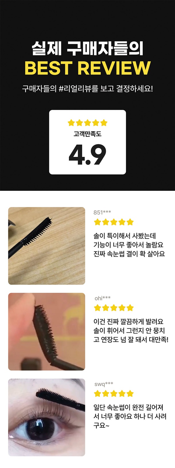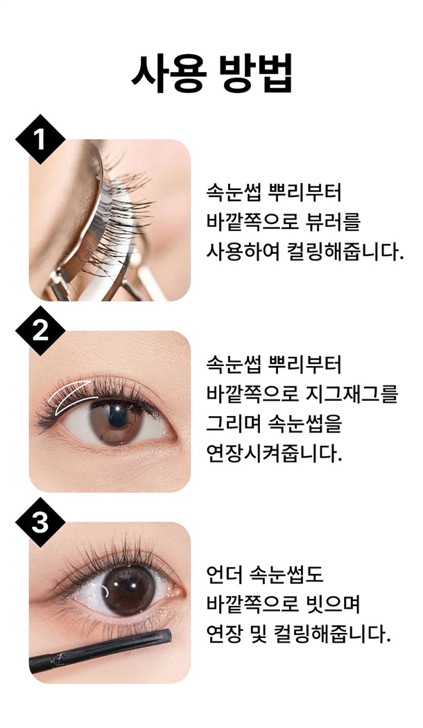 특별 설계된 커브형 솔으로 뭉침 없이 속눈썹 한 올 한 올 연장!